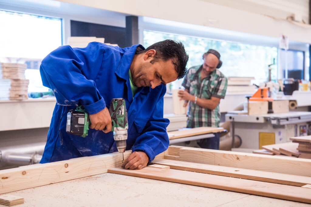 We nemen als standaard dat cliënten de eerste 3 maanden op het terrein werken. Zo komen zij tot rust, wennen aan het nieuwe ritme, en leren de tijden en verantwoordelijkheden die hierbij horen weer op te pakken. Qua werk kan gedacht worden aan werken in de hout werkplaats, in de groentetuin, hout hakken, schoonmaakwerkzaamheden, montagewerk, onderhoudswerkzaamheden ed. We bieden maatwerk aan hen die deze stabiliteit snel te pakken hebben, of aan hen bij wie gezien wordt dat een dagbesteding buiten de deur helpend is in het proces. Zij kunnen vanaf 6 weken al buiten de deur werken.
